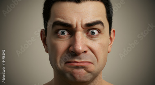 © mest selda blessun, Fototapeta premium 3D Render: Intensely Anxious Male Face, Close-Up
