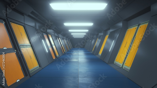 © Miguel Aguirre, Fototapeta premium 3d render interior. Futuristic hallway. Interior concept design