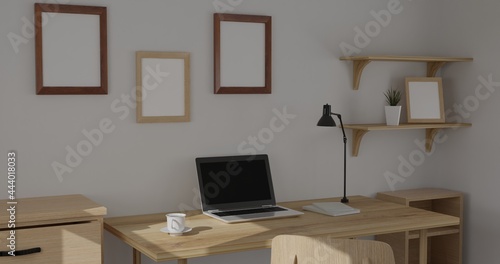 Fototapeta premium 3d render interior room. minimal style design. working desk. home interior design. template for website, wallpaper, and mockup.