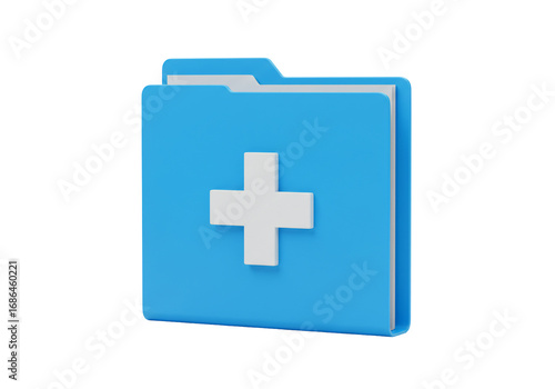 © Mayasari, Obraz premium 3 d render light blue folder icon white plus symbol transparent background