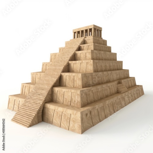 © Githa, Fototapeta premium 3D Render, Low Poly style of an ancient Mesopotamian ziggurat, on isolated white background, Generative AI