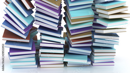 © Miguel Aguirre, Obraz premium 3d render. Many stacked books falling