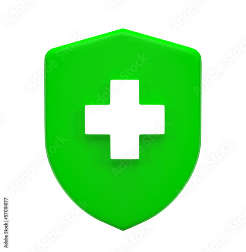 © 3D Icon, Obraz premium 3D render. medical guard shield insurance symbol isolated on transparent background
