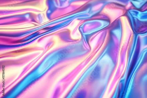 © Emongrapic, Fototapeta premium 3d render Metallic liquid background. Abstract neon texture. Rainbow 3d holographic foil. Wavy glossy surface in blue and purple colors Background