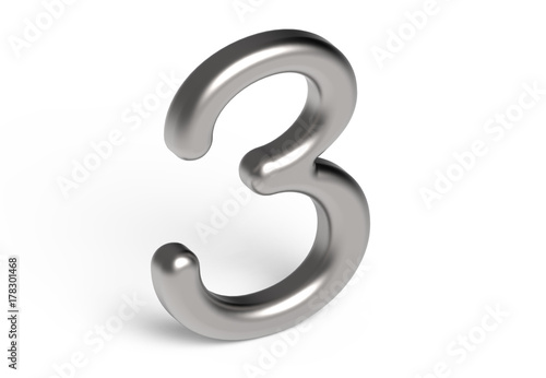 © JoyImage, Naklejka premium 3D render metallic number 3