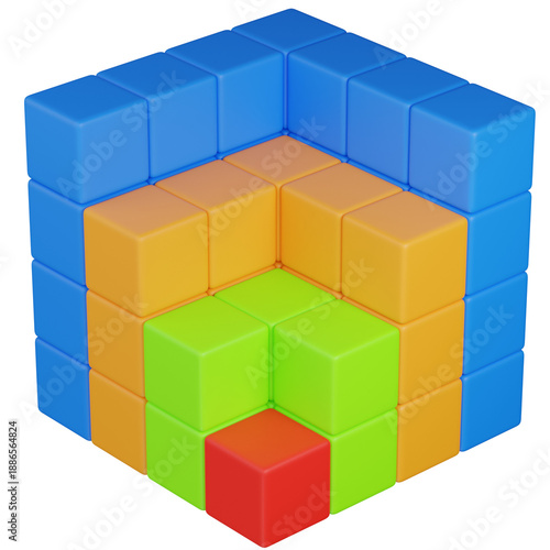 © kaicon, Obraz premium 3d render Multi-layered Colorful Cube Bar Chart icon