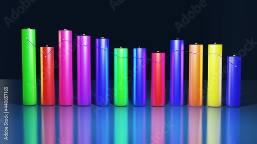 Obraz premium 3d render. Multicolor bars, counters and graph. Beautiful 3d background for...
