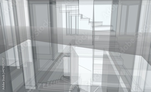 © Olha_And, Fototapeta premium 3d render of a building