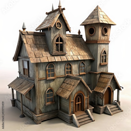 © Box Milk, Fototapeta premium 3D Render of a Cardboard Haunted House, on isolated white background, Generative AI