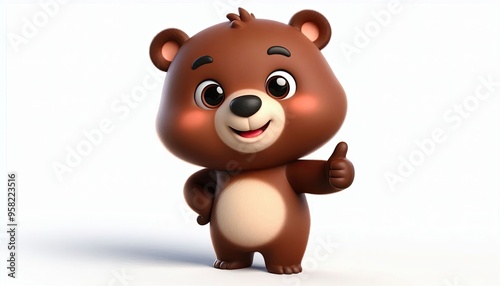 © procreation, Obraz premium 3D Render of a Cartoon Bear Smiling and Giving a Thumbs Up