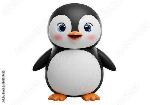 Fototapeta premium 3d render of a cute cartoon penguin character with rosy cheeks and blue eyes...