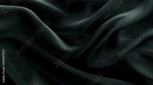 © Anyket, Obraz premium 3D render of a dark green silk fabric background, an elegant abstract wallpaper