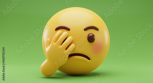 © widiati, Fototapeta premium 3D Render of a Face Palm Emoji, Expressing Regret and Embarrassment on a Green Background