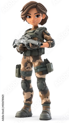 © novian, Naklejka premium 3D Render of a Female Soldier Character Holding a Futuristic Weapon
