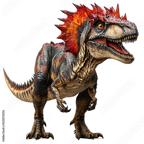© nature.floor, Naklejka premium 3D Render of a Fiery-Crested Dinosaur Standing Isolated on a Transparent Background
