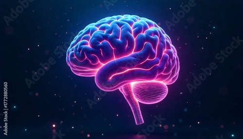 Fototapeta premium 3D Render of a Glowing Neural Brain Representing Artificial Intelligence and Digital Technology