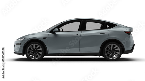 © ardasavasciogullari, Obraz premium 3D Render of a gray colored modern electric car, full left side view, transparent background.