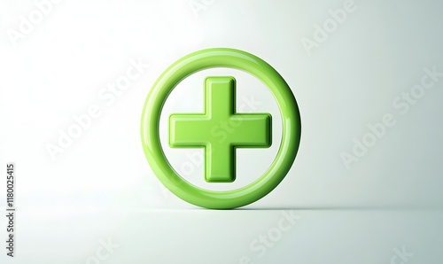 © Maryanto, Fototapeta premium 3D render of a green plus sign in a circle.