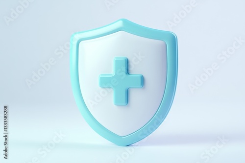 Fototapeta premium 3D render of a light blue shield icon with a white plus sign
