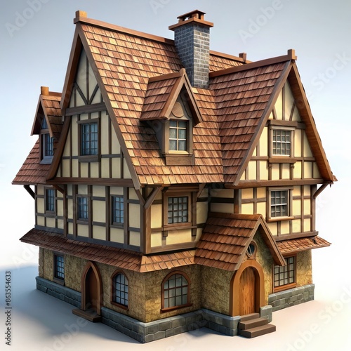 © Box Milk, Fototapeta premium 3D Render of a Miniature Tudor House, on isolated white background, Generative AI