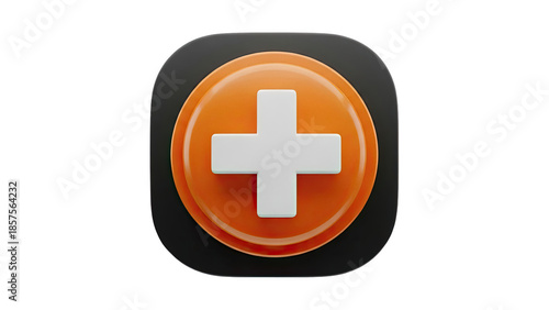 © Ariss, Fototapeta premium 3D render of a plus icon with orange and black background on transparent background