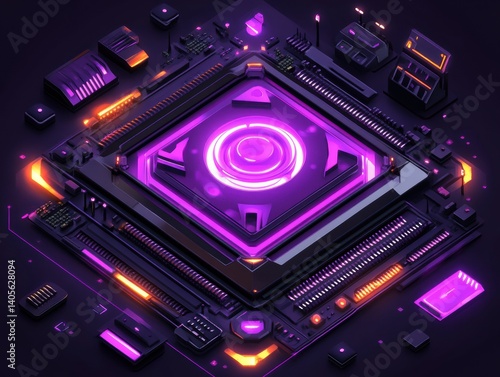 © LucieAliceNova, Obraz premium 3D Render of a Purple Neon-Lit Circuit Board