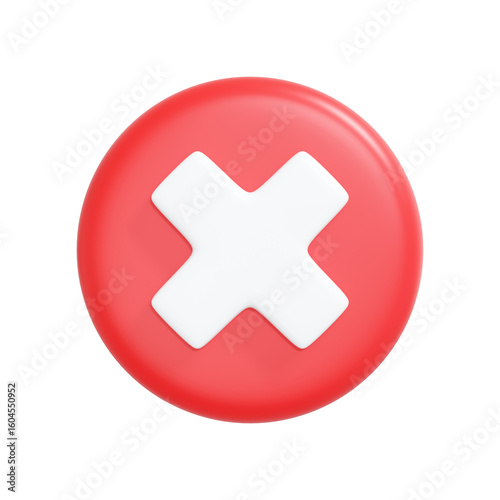 Fototapeta premium 3D render of a red circular button with white cross symbol, representing cancel, error, or close in minimal and modern style