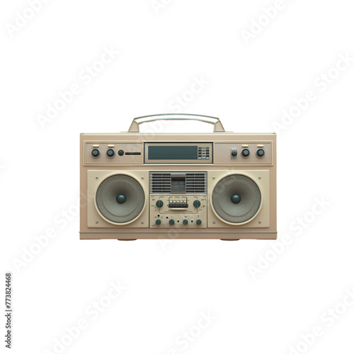 Obraz premium 3D render of a retro beige boombox on a light grey background
