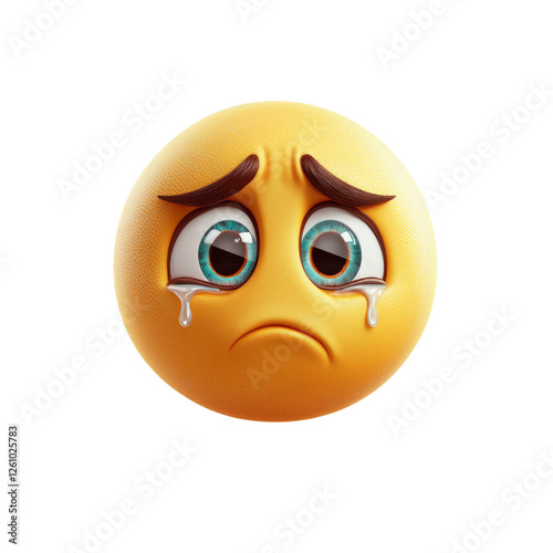 Fototapeta premium 3D Render of a Sad Crying Emoji with Teal Eyes