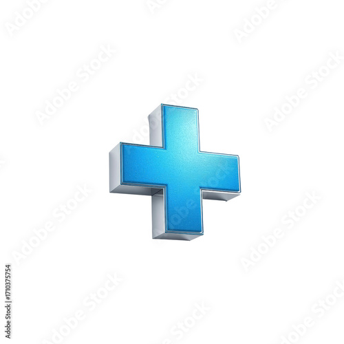© Alex Cuong, Obraz premium 3D Render of a Shiny Blue Plus Sign on Transparent Background