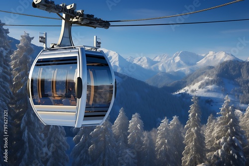 © Creative, Obraz premium 3D render of a ski lift in the mountains during winter season