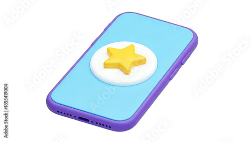 © kanaya, Fototapeta premium 3D render of a smartphone with a star icon on screen on transparent background