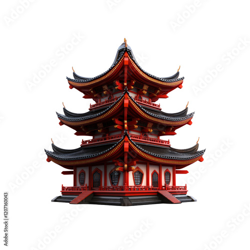 © Cove Art, Fototapeta premium 3D Render of a Traditional East Asian Pagoda Against a Transparent background
