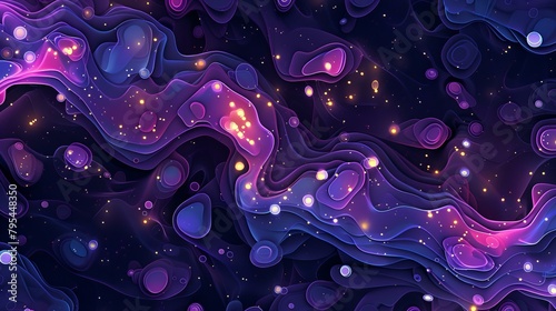 © Charisma Art Studio, Obraz premium 3D render of abstract dark purple background with glowing waves and bubbles, vector illustration