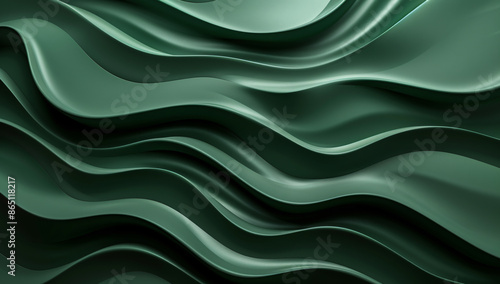 © Welle Photos, Obraz premium 3d render of abstract green background with paper waves in the style of organic shapes, high resolution, layered translucency and organic forms