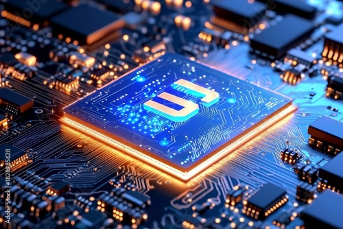 © RaidenShogun, Fototapeta premium 3D Render of AI Technology on a Circuit Board