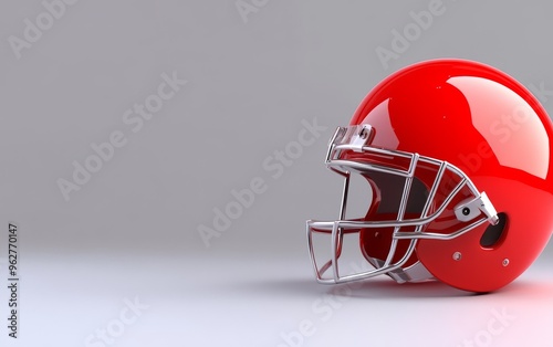 © Emqan, Fototapeta premium 3D render of American football ball and helmet on grey background