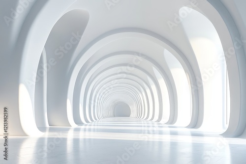 © YUANCEN, Obraz premium 3D render of an abstract white background with tunnels and arches, minimalist style, empty space for presentation design.