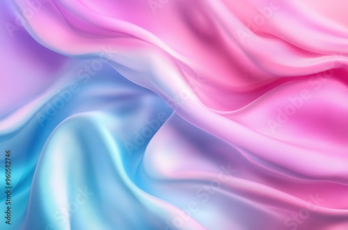 © Cetin, Fototapeta premium 3D render of an iridescent, pastel pink and blue silk background