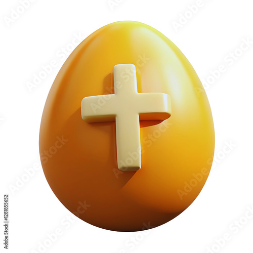 Fototapeta premium 3D Render of an Orange Easter Egg with a Yellow Cross