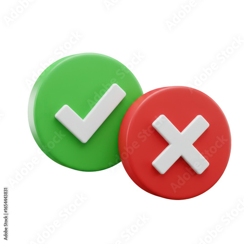 © AI Images Studio, Obraz premium 3d render of checkmark and cross symbols on transparent background
