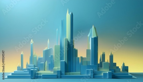 Fototapeta premium 3D render of city business graph. It symbolizes growth and success in the market. The graph highlights financial progress and increasing profits.