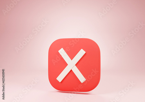 © Naphatson, Obraz premium 3d render of cross mark icon with pink background
