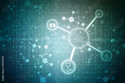 © deepagopi2011, Obraz premium 2d render of dna structure, abstract background