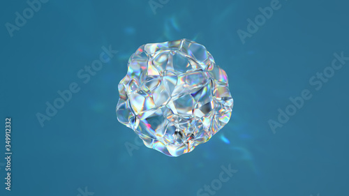 © Alexey Brin, Fototapeta premium ..3d render of glass shape with realistic caustics on blue background. Light refraction effect.