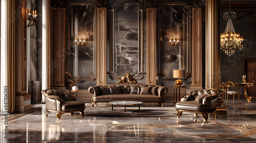 © Thanaphon, Fototapeta premium 3d render of interior in the living room