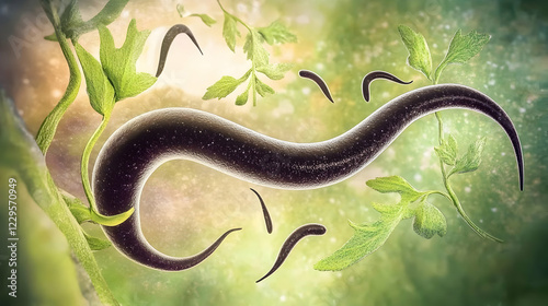 © Siasart Stock, Obraz premium 3D Render of Parasitic Worm Infecting a Plant with Microscopic Detail.
