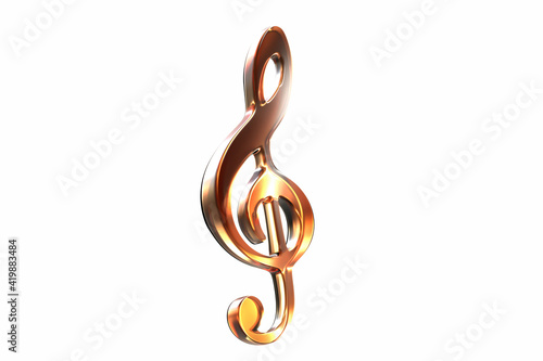 © Shiva3D, Fototapeta premium 3D render of pink glass music clef symbol isolated on white