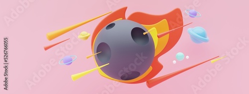 Fototapeta premium 3d render of planet star and moon that floating on the air at night with...