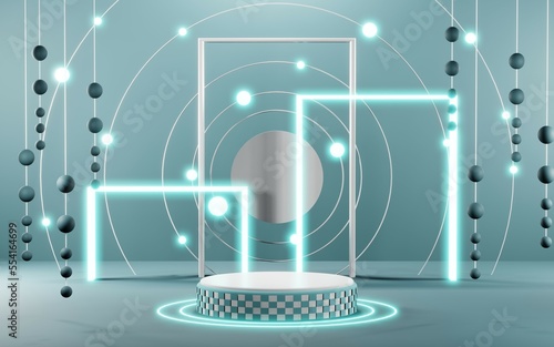 © Thares2020, Naklejka premium 3D render of Podium background in blue tones for displaying cream products. cosmetics